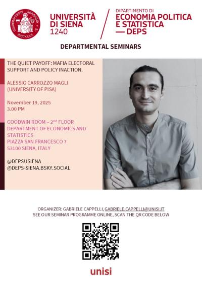 Alessio Carrozzo (University of Pisa) "The Quiet Payoff: Mafia Electoral Support and Policy Inaction"