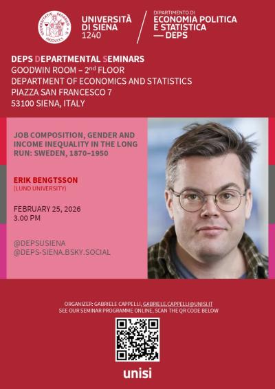 Erik Bengtsson (Lund University) "Job composition, gender and income inequality in the long run: Sweden, 1870–1950"