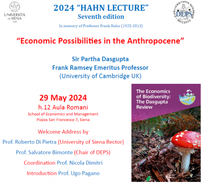 Professor Frank Hahn (Birmingham, London School of Economics, Cambridge, Siena) is regarded as one of the most influential economic theorists of the 20th century. His work made significant contributions to the theory of economic equilibrium and the role of money in the economy. Professor Hahn also gained widespread attention for initiating a letter, signed by over 300 economists, that critiqued Margaret Thatcher’s economic policies. Throughout his career, he mentored many of today’s leading economists. His collaborations with some of the foremost figures in economics helped shape the discipline, and during his tenure at the University of Siena, he played a key role in developing the PhD program in Economics and contributing to the department’s broader scientific activities.