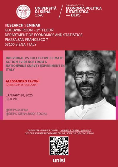 Alessandro Tavoni (University of Bologna) "Individual vs Collective Climate Action Evidence from a Nationwide Survey Experiment in Italy"