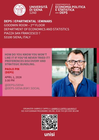Paolo Pin (DEPS - Università di Siena) "How do you know you won't like it if you've never tried it? Preferences discovery and strategic bundling."